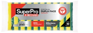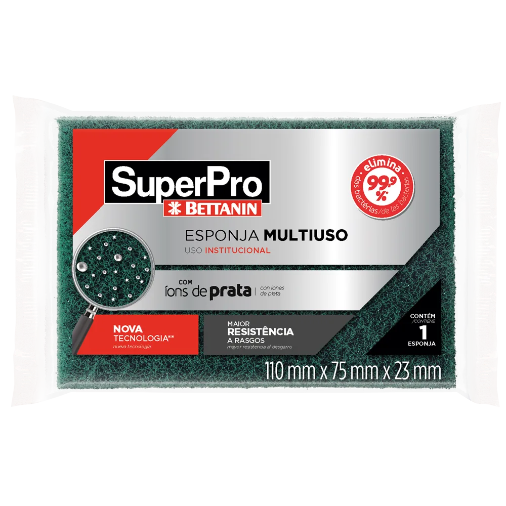 Nova tecnologia no processo da espuma que compõe a esponja Multiuso Superpro, atribuindo ao produto maior resistência ao rasgo durante o uso em comparação a antiga formulação. Produto com tecnologia íons de prata, que eliminam 99,9% das bactérias no corpo da esponja.