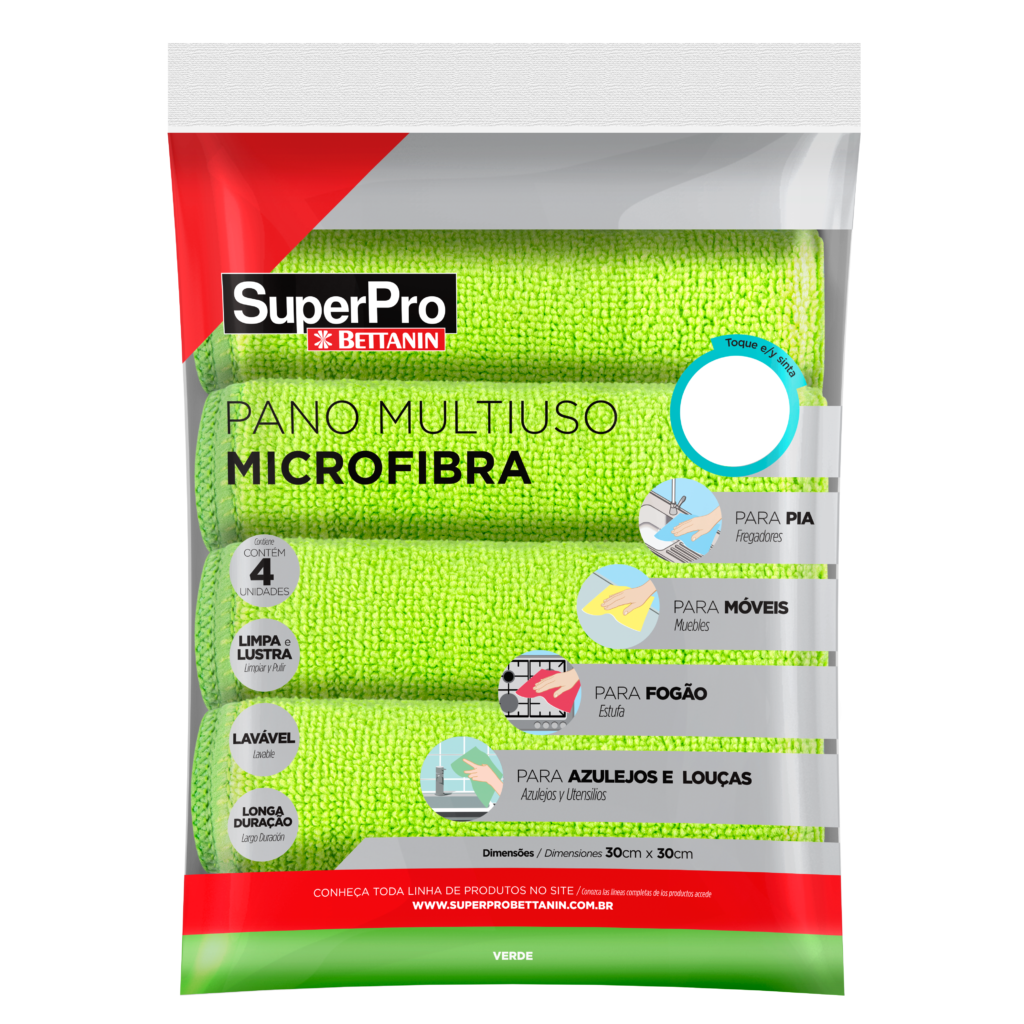 O pano microfibra multiuso pode ser usado sem adição de produto químico. Pode ser usado a seco para remover poeira e dar brilho. Aplicado também levemente úmido para limpar a maioria das superfícies laváveis.