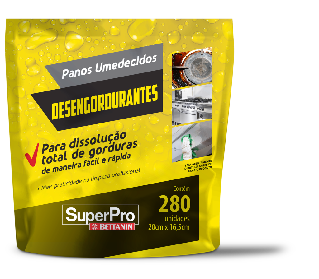 Práticos e eficientes a limpeza de superfícies cm gordura. Feitos com tecido macio e absorvente, já vem umedecidos com uma solução que proporciona limpeza total. Sua fórmula balanceada permite aderencia e disolução total de gorduras de maneira rápida e fácil. Sua ação desengordurante age instantaneamente.